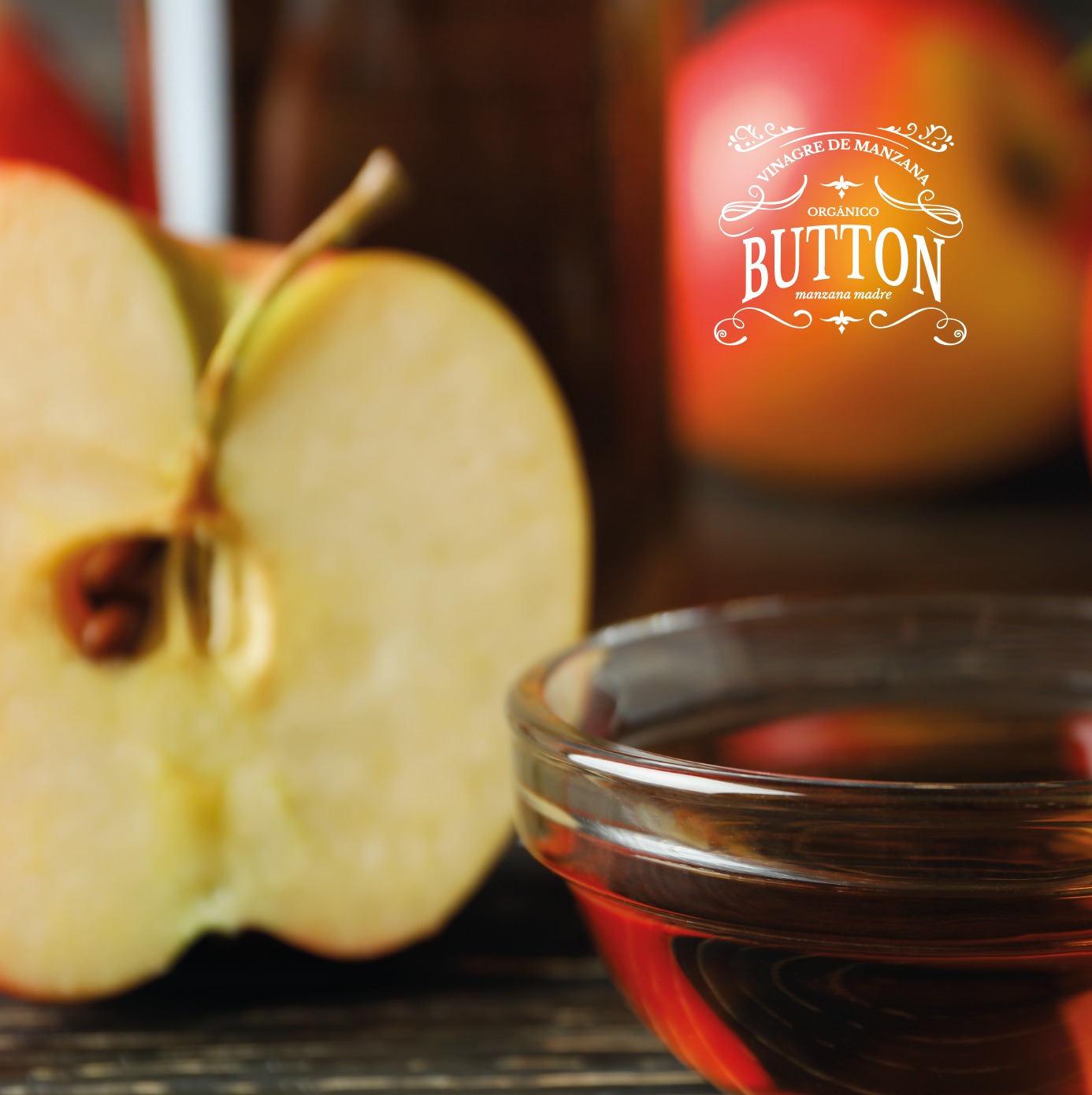 Diseño y conceptualización de imagen Corporativa para Button Vinagre orgánico de manzana. Con la madre, revitalízate con Button